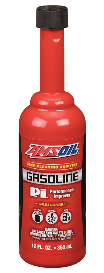 AMSOIL P.i. is a potent gasoline performance improver with concentrated detergent that aggressively cleans stubborn, power-robbing deposits from injectors, valves and the combustion chamber. Effective in port and direct injection systems. Bottle compatible with capless fuel systems. Cleans entire fuel system in one tank of gasoline. For use with cars and trucks. Treats up to 30 gallons. Add entire bottle to tank at fill-up. For best results, clean your fuel system with P.i. every 4,000 miles (6,400 km). Do not use with diesel or two-stroke engines.