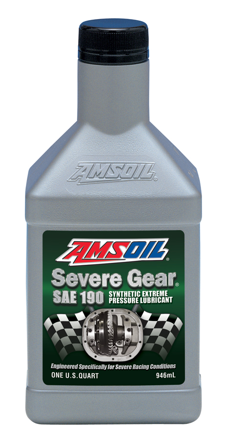 AMSOIL Severe Gear Synthetic SAE 190 and SAE 250 Gear Lubricants are premium grade, extreme pressure gear lubes engineered specifically for the demands of severe racing conditions. They are formulated with shear stable, heavy synthetic base oils for "high film strength" and extra heavy treatments of additives. Their synthetic formulations provide improved flow over conventional oils, reducing viscous drag and power loss.