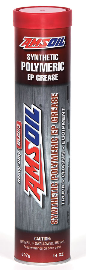 AMSOIL Synthetic Polymeric Grease provides exceptional performance in heavily loaded chassis grease points, wheel bearings, axle assemblies, universal joints, pivot pins, fifth-wheel hitch plates, steering linkages, spring pins, king pins, ball joints, water pump bearings and other greased heavy-duty components.
