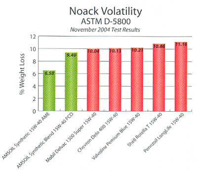 AMSOIL Synthetic Heavy Duty Diesel & Marine Motor Oil has lower volatility than conventional petroleum oils. Oil consumption and emissions are minimized due to less vapor passing into the combustion chamber. Lower volatility helps AMSOIL 15W-40 Diesel Oil retain its viscosity after high-temperature service for continued dependable protection.