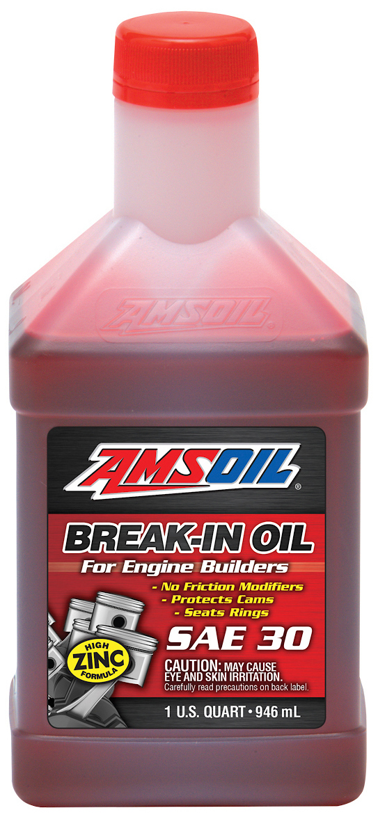 AMSOIL Break-In Oil is an SAE 30 viscosity grade oil formulated without friction modifiers to allow for quick and efficient piston ring seating in new and rebuilt high-performance and racing engines. It contains zinc and phosphorus anti-wear additives to protect cam lobes, lifters and rockers during the critical break-in period when wear rates are highest, while its increased film strength protects rod and main bearings from damage.